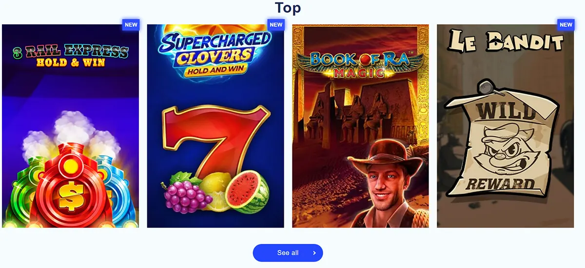 Προσφέρουμε πάνω από 8.500 παιχνίδια από κορυφαίους παρόχους όπως NetEnt, Evolution Gaming και Pragmatic Play. Η πλατφόρμα μας υποστηρίζει τόσο fiat όσο και κρυπτονομίσματα.